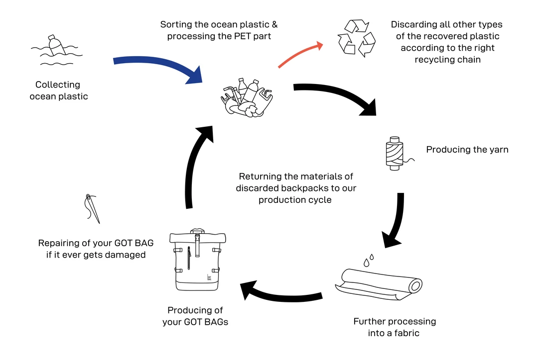 - Together, GOT BAG support a sustainable circular economy and tackle the problem at its root – because not only do we recycle ocean plastic for your GOT BAG, but we also work to prevent plastic from being used and ending up in the ocean in the first place.