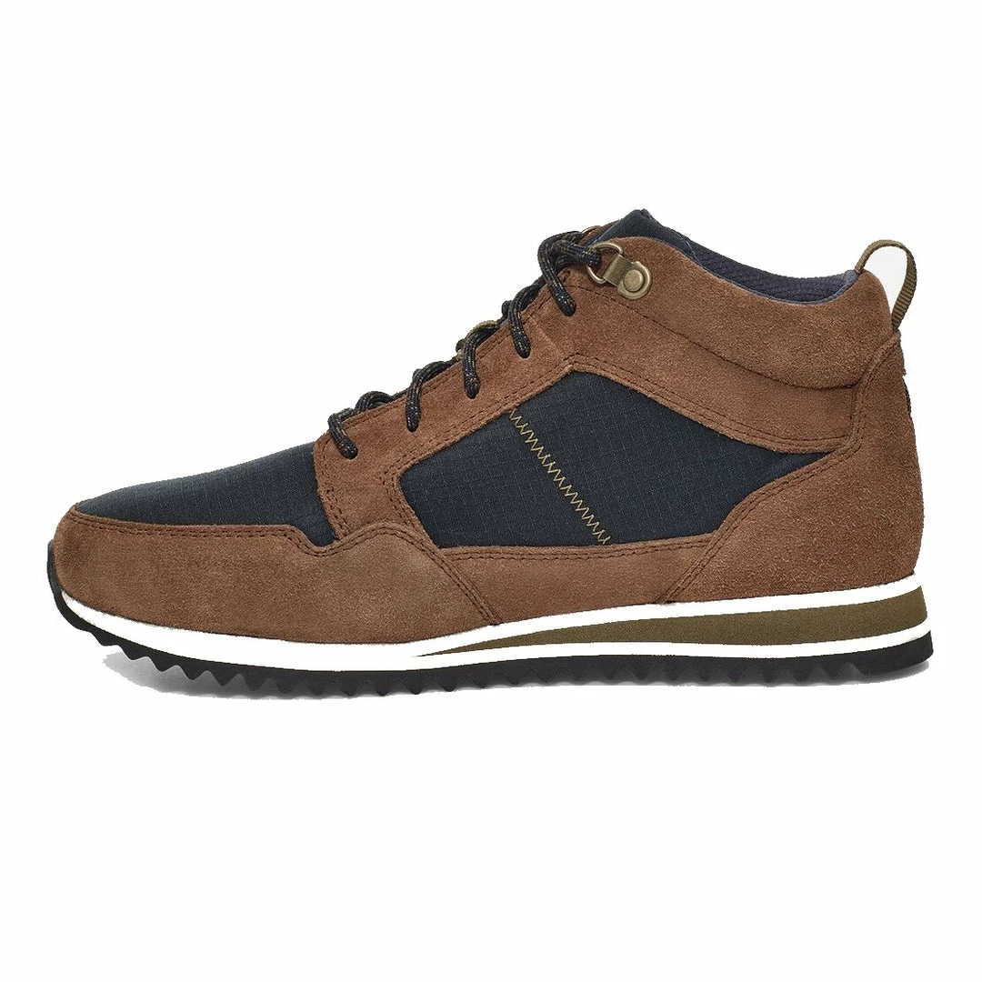 Inspired by vintage camping gear, the Highside Mid combines rugged suede with adventure-ready ripstop. Lined with Tevaโs new memory foam MAX-COMF insole and finished with recycled polyester laces, this retro high-top shoe is grounded in a rubber sawtooth outsole for ultimate traction and features Teva RAPID RESIST technology to resist splashes and stains.